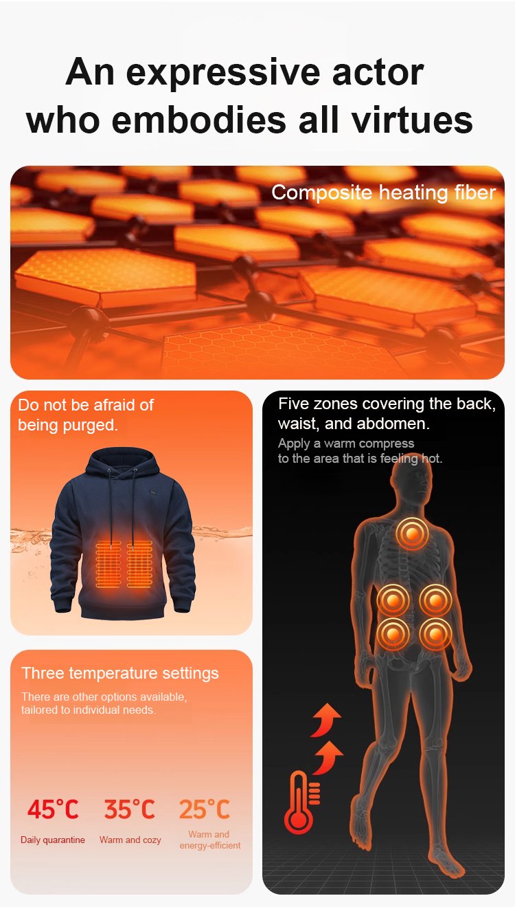 【10-Second Rapid Heating】Winter Smart Electric Heated Hoodie